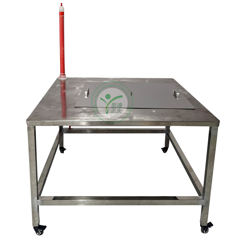 5.測試臺具有干試和濕試兩種工作模式,測試臺裝有全自動注水裝置,便于試品注水操作,干試時(shí),備有鋼珠可以作為絕緣靴的高壓電極。