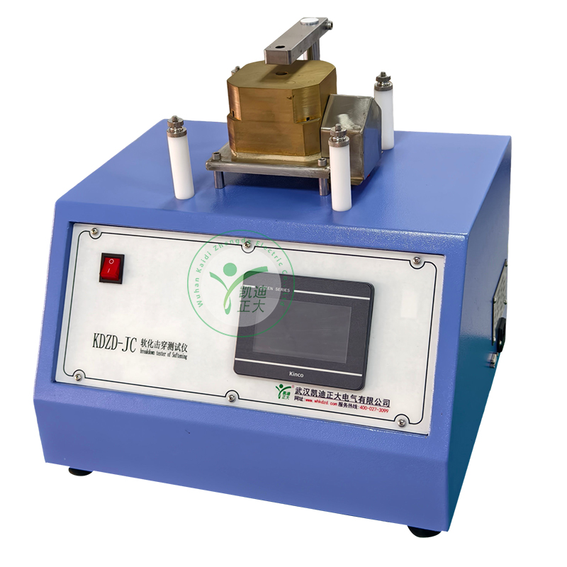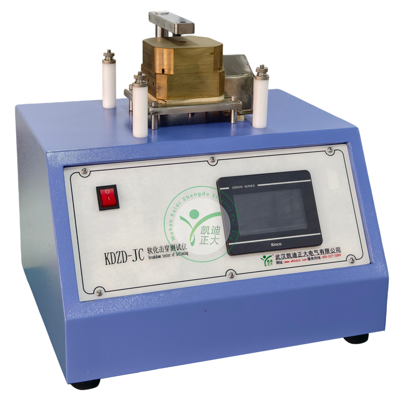 KDZD-JC 軟化擊穿測試儀該軟化擊穿試驗儀執行標準:GB/T4074.6-2008/IEC 60851-6;檢驗標準:JB/T4279.8-2008,適用于檢測導體標稱直徑0.020mm以上3.000mm及以下的漆包圓線和薄膜繞包圓線以及10mmx2mm以下的扁線在熱狀態下軟化后的絕緣性能,儀器可自動測溫、控溫、溫度調節和顯示;根據設定的預熱時間、目標溫度、試驗時間,儀器自動完成對試樣的預加熱、施加負荷和試驗電壓,達到試驗時間或試樣被擊穿時自動卸負荷和報警并顯示試驗時間和溫度,整個測試過程自動完成。
